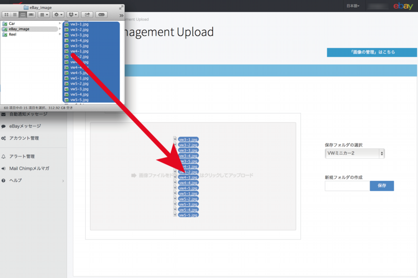 ここでは「VWミニカー2」というフォルダーを作って、そこに画像をアップロードをしてみます。