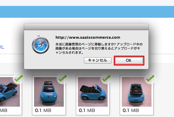 ※全ての画像にチェックが入る前にOKをクリックすると全ての画像がアップロードされませんのでご注意下さい。