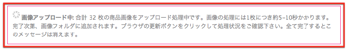 大量の画像をアップロードした場合下記の注意書きが表示され少しづつ画像がアップロードされていきます。