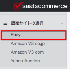 左メニュー「販売サイトの選択」の中の「eBay」を選択してeBayリスターに切り替えます。