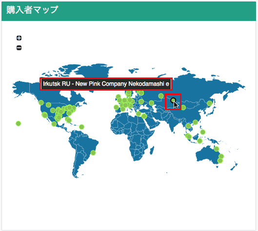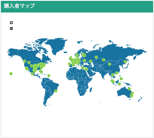 購入したバイヤーの分布が世界地図上に表示されます。