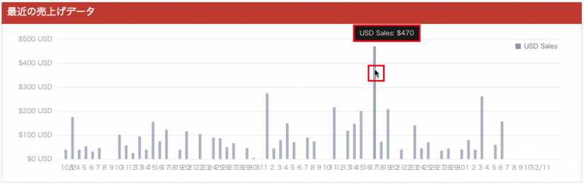 棒グラフにポインタを合わせるとその日の売上げ金額がポップアップで表示されます。