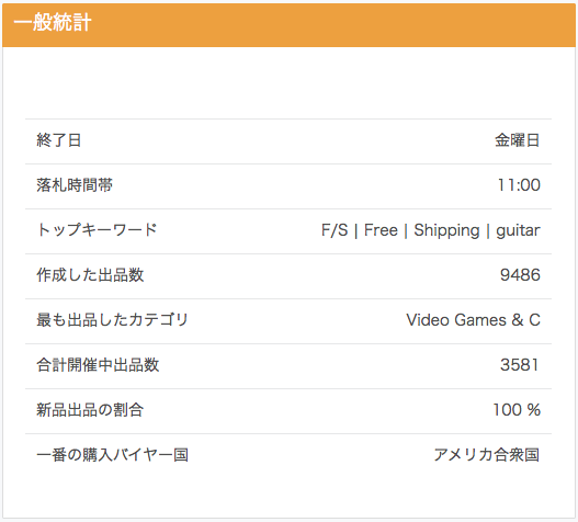 【最も出品したカテゴリ】指定した期間に最もよく出品したカテゴリを表示します。
