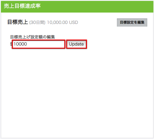 目標金額をドルで入力して「Update」をクリックします。