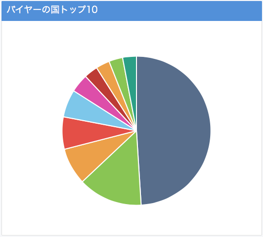 購入してくれたバイヤーの国別トップ10がパイチャートで表示されます。