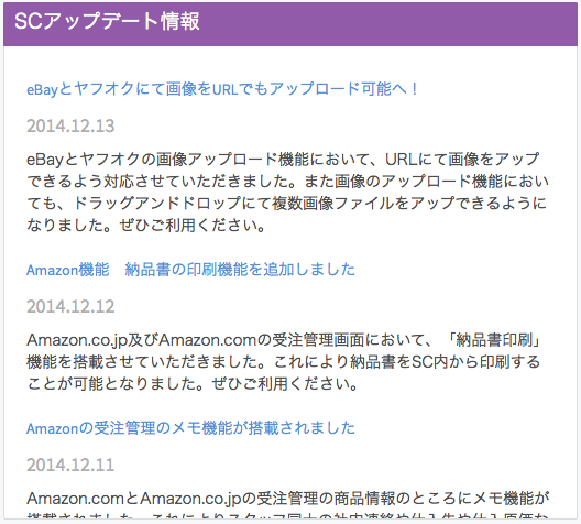 SAATSコマースのアップデート情報がここに表示されます。