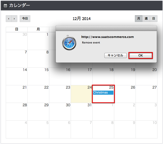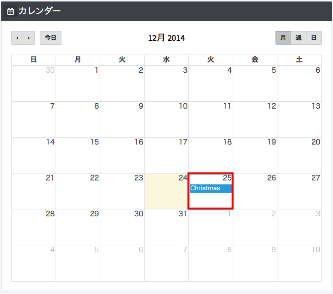 イベントを削除するには、もう一度クリックすると削除する事が出来ます。