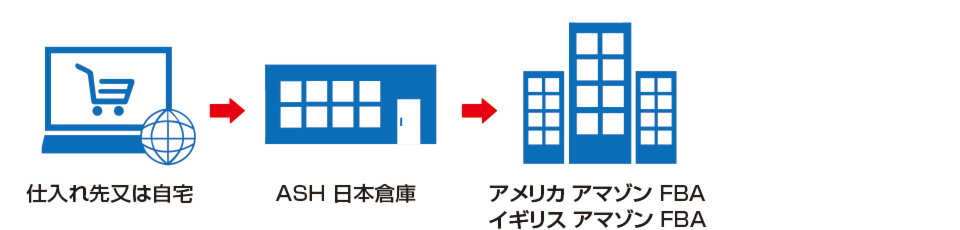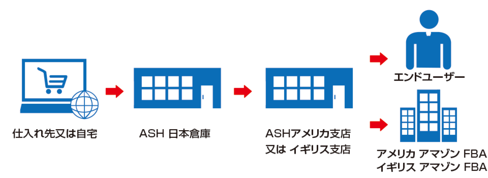 日本支店 ➡ アメリカ支店またはイギリス支店 ➡ エンドユーザー又はFBAに発送