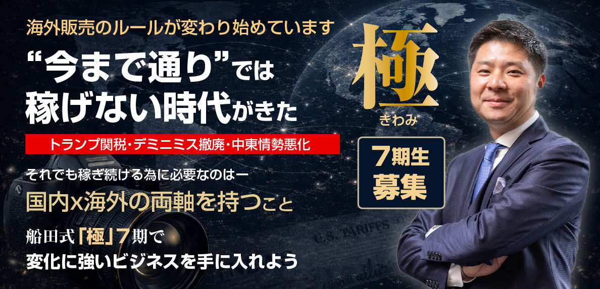 船田式「極」では、国内販売と 海外販売の両軸を持つことで、 どんな環境でも利益を出し続ける力を身につけます。