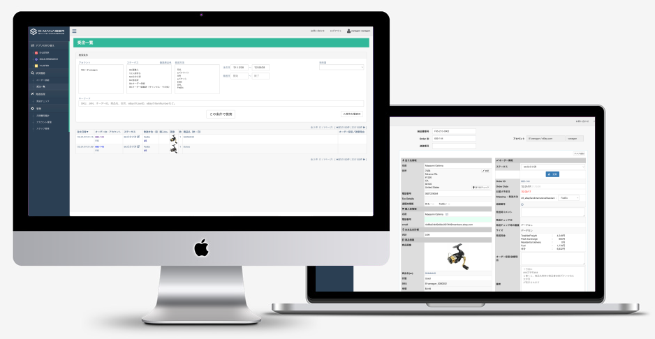 仕入れ、仕分け、送り状発行、発送管理、利益管理など、多数の機能を備えます。